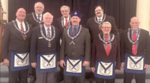 (Front left to right) Jay Minick, Secretary; Mike Anderson, Senior Warden; Mark Blue, Worshipful Master; Ian Mountfield, Junior Warden; Trent Helden, Treasurer;